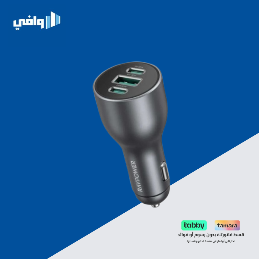 شاحن سيارة راف باور بقوة 100 واط مع 3 منافذ، بمنفذين تايب سي ومنفذ يو اس بي، هو الحل المثالي لشحن جميع أجهزتك أثناء التنقل. يتميز هذا الشاحن بقدرة فائقة تصل إلى 100 واط، مما يضمن سرعة شحن عالية وفعالية لأجهزتك المتعددة. مع إمكانية شحن 3 أجهزة في وقت واحد، يتوافق مع الهواتف الذكية، الأجهزة اللوحية، أجهزة الكمبيوتر المحمولة، سماعات الرأس، والمزيد. يتمتع الشاحن بحماية شاملة ضد القصر، والتسخين الزائد، والتيار الزائد، والشحن الزائد، مما يضمن أمان الأجهزة.