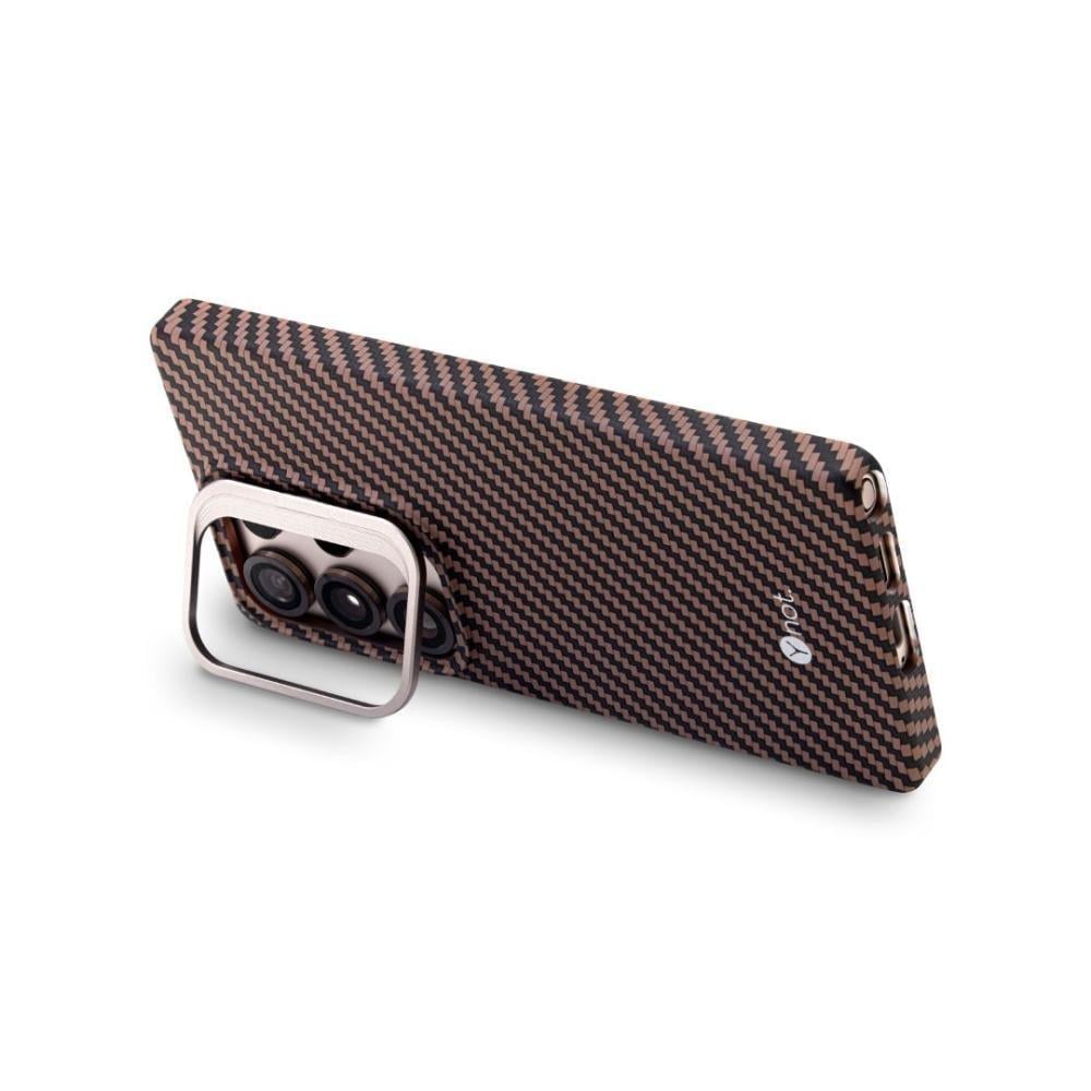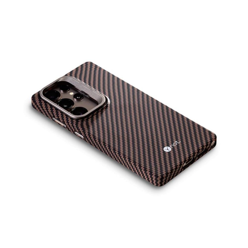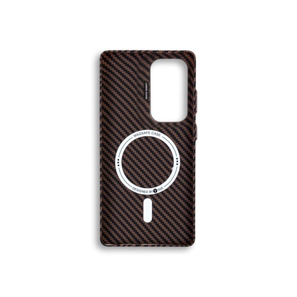واي نات - KEVLAR جراب حماية مع ماج سيف وستاند لاجهزة سامسونج - اسود و بني داكن كربوني