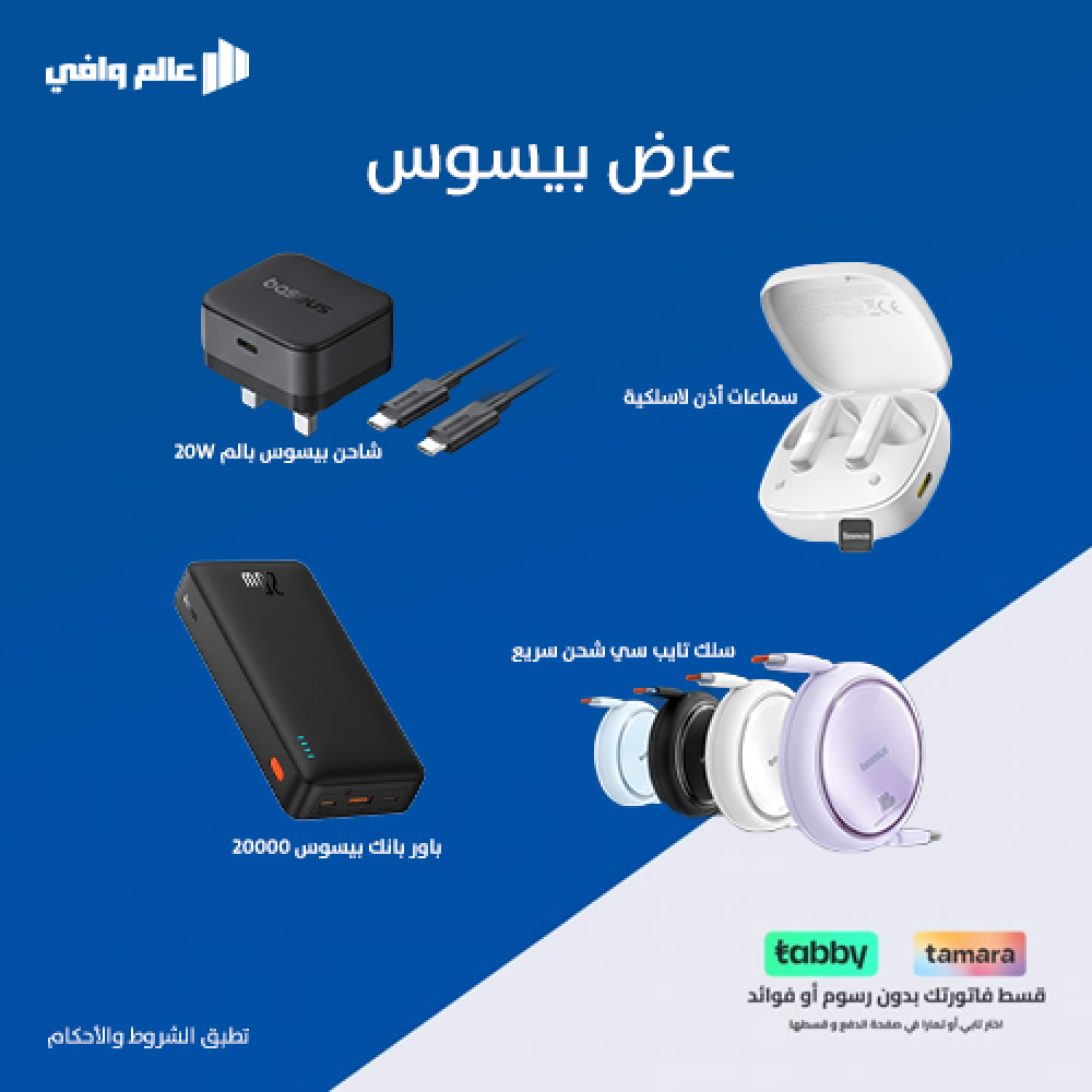 ارفع مستوى يومك مع أداء بيسوس الذكي، و تسوق الآن عرض بيسوس من عالم وافي واحصل على باقة متكاملة من الشحن والطاقة والصوت، بتصميم أنيق وتقنيات متطورة ترافقك أينما كنت.