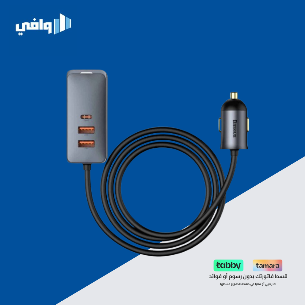 بيسوس - شاحن سيارة متعدد المنافذ PPS مع سلك تمديد 120 واط 3U + 1C رمادي
