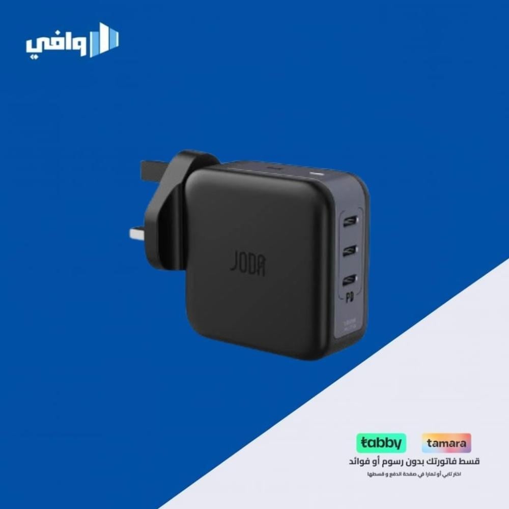 جودا شاحن جداري بقوة 100 واط بثلاث منافذ تايب سي - اسود