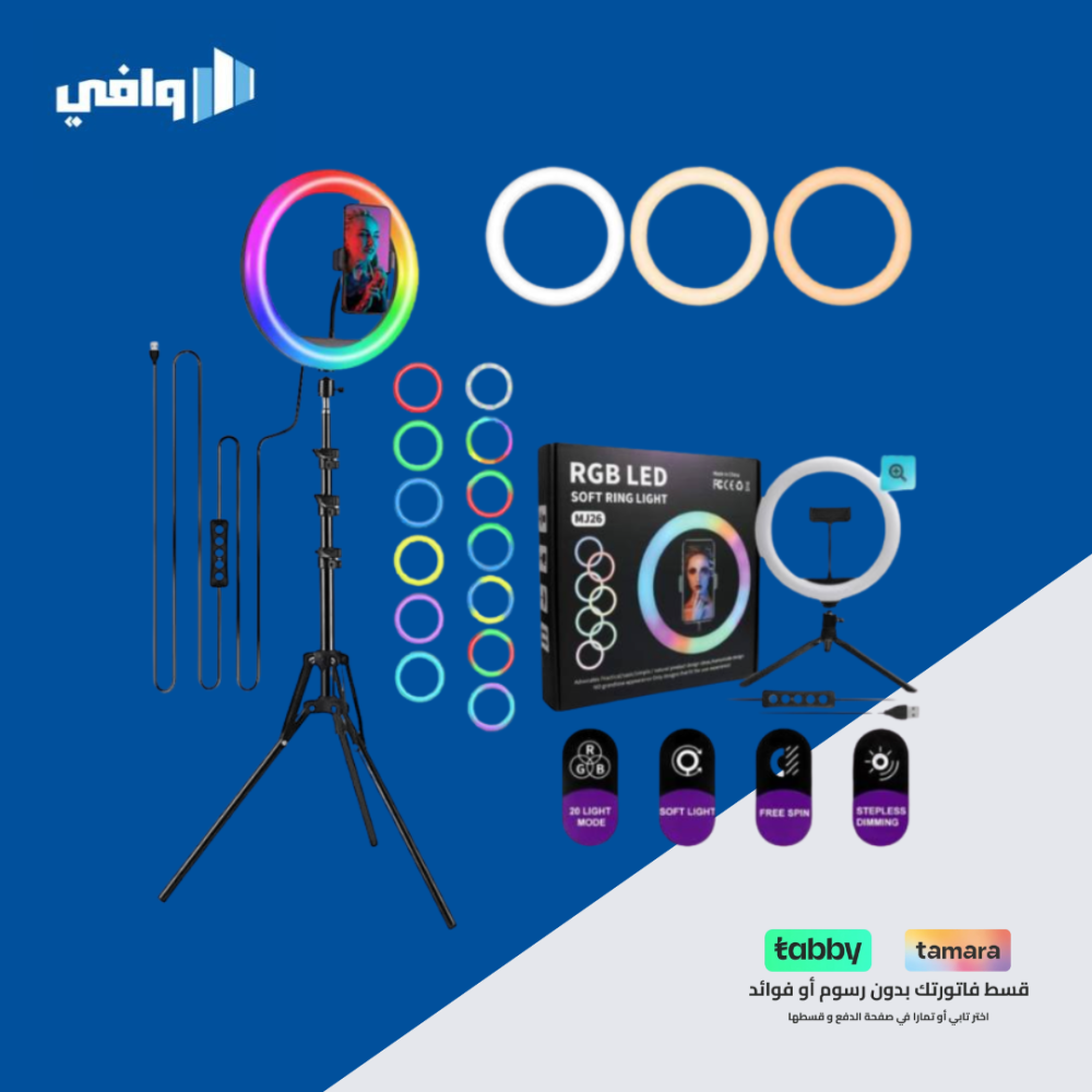رينق لايت اضاءة تصوير RGB LED مقاس 45 سم -3D الوان متعددة