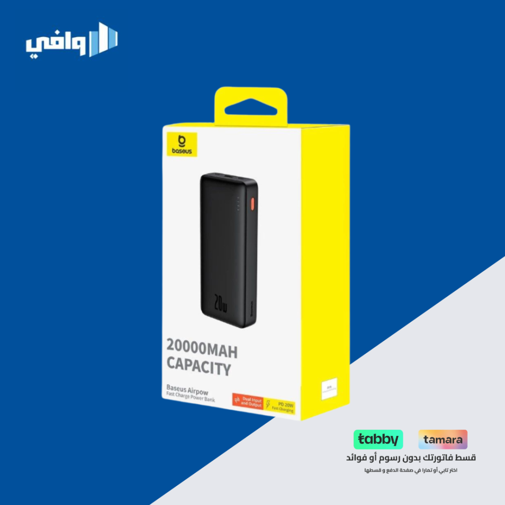 بيسوس - باور بانك بطارية متنقلة بيسوس Baseus Airpow 20000 بمنفذين شحن سريع تدوم طويلاً PD 20W
