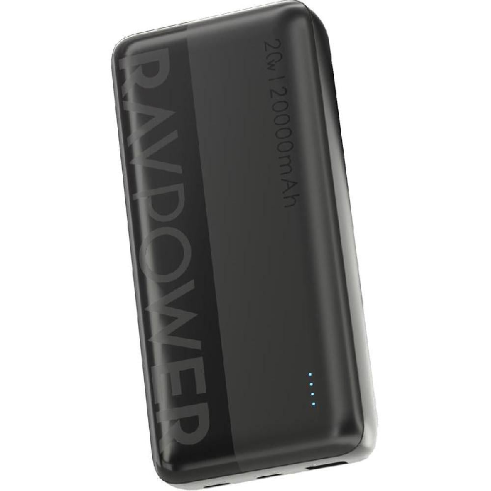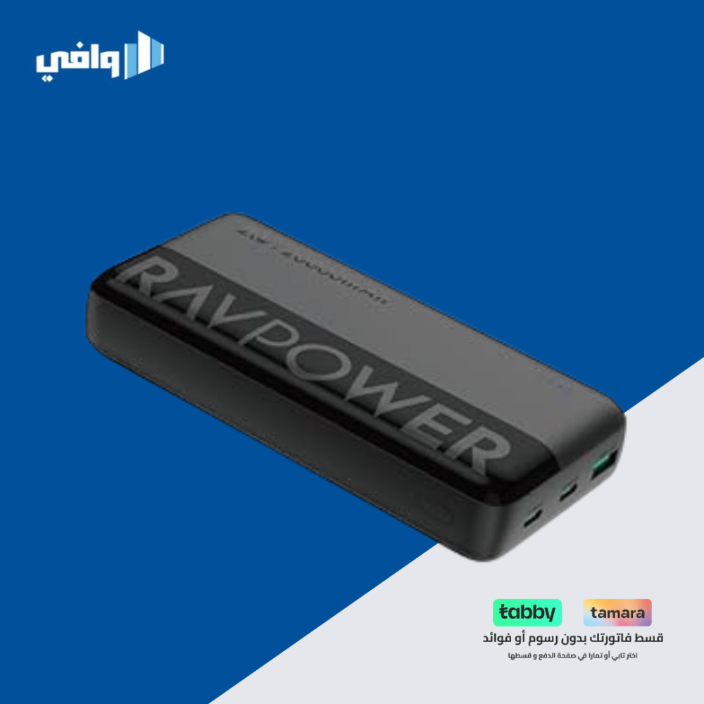 راف باور - بطارية متنقلة بقوة 20 واط بسعة 20000 ملي امبير بمنفذين تايب سي ومنفذ يو اس بي مع شاشة عرض - اسود