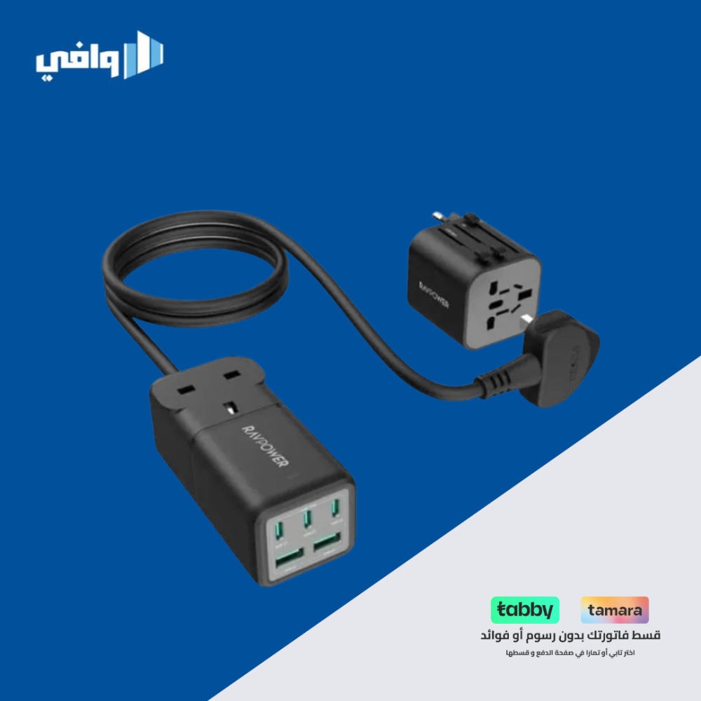 راف باور - بكج السفر 2 في 1 فيش عالمي اكثر من 190 دولة + توصيلة محمولة بمنافذ شحن سريع بقوة 70 واط