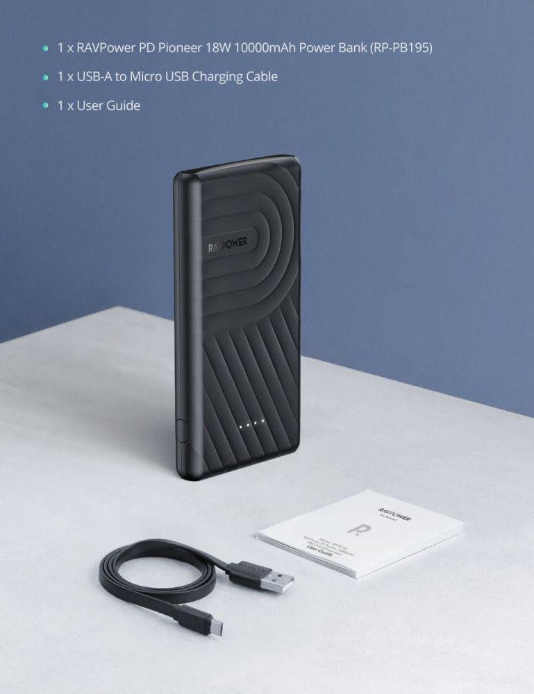 الوصف: بطارية من راف باور تصميم نحيف و أداء فائق السرعة يحتوي على منفذين بي دي لشحن السريع - 18 واط ، كوالكوم يو اس بي - 18 واط ، مع كيبل يو اس بي مايكرو للشحن . بحجم 10000 ملي امبير